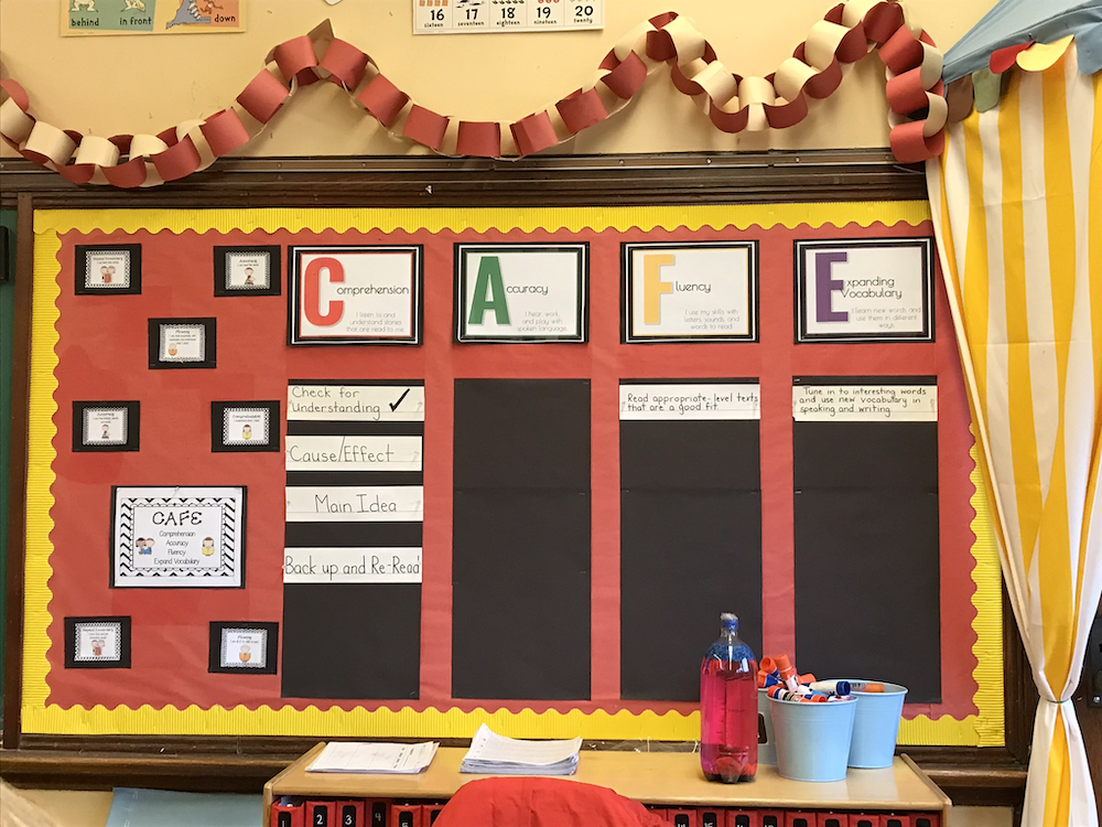 The CAFE Menu has four columns, each of which represents one of the four key components. In each column you will find some of the most commonly used reading strategies in each of the four areas. The menu filled with strategies can be found in The CAFE Book and on the Daily CAFE website.