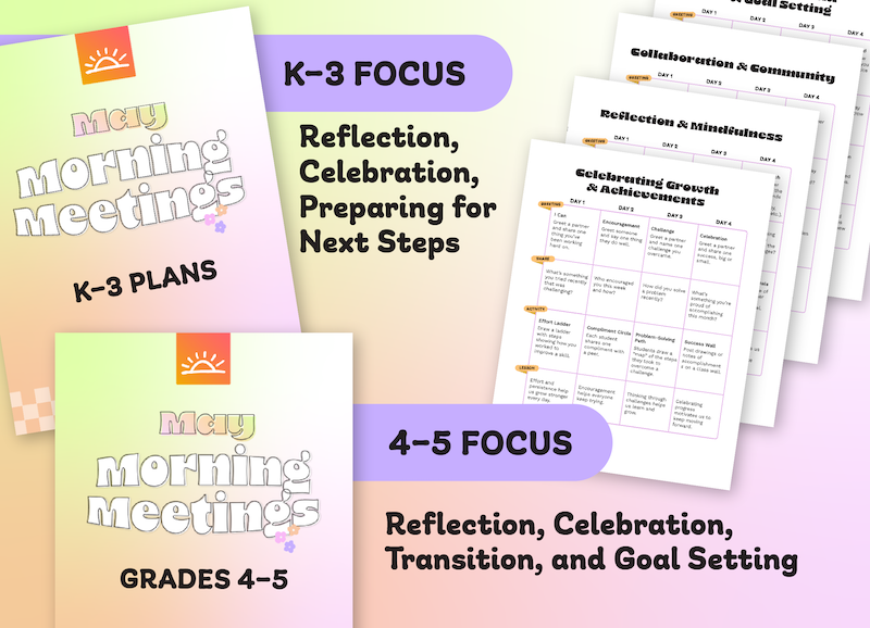 Ready-to-use four-week morning meeting plans for grades K–3 and another for grades 4–5.