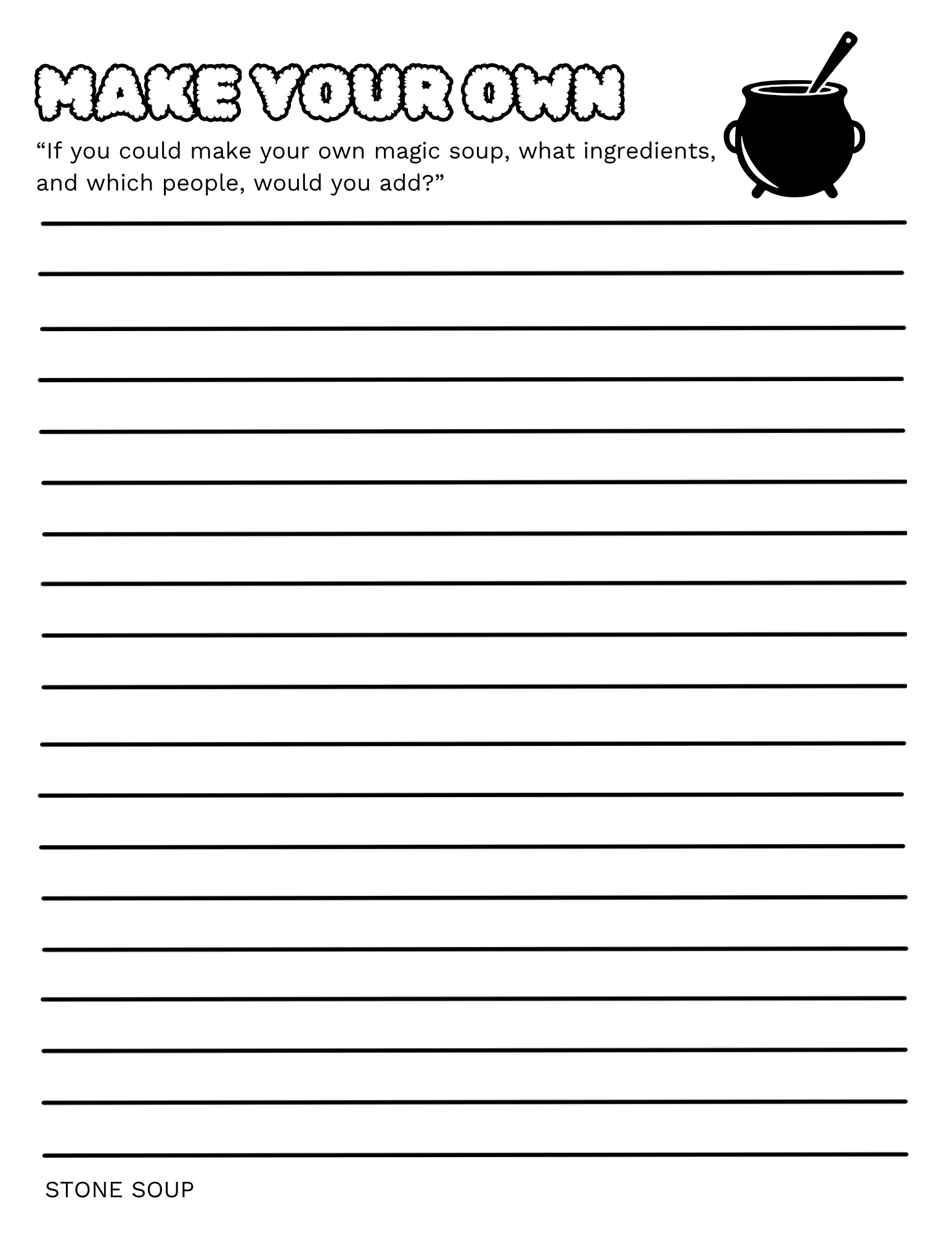 - Writing Prompt: “If you could make your own magic soup, what ingredients—and which people—would you add?”