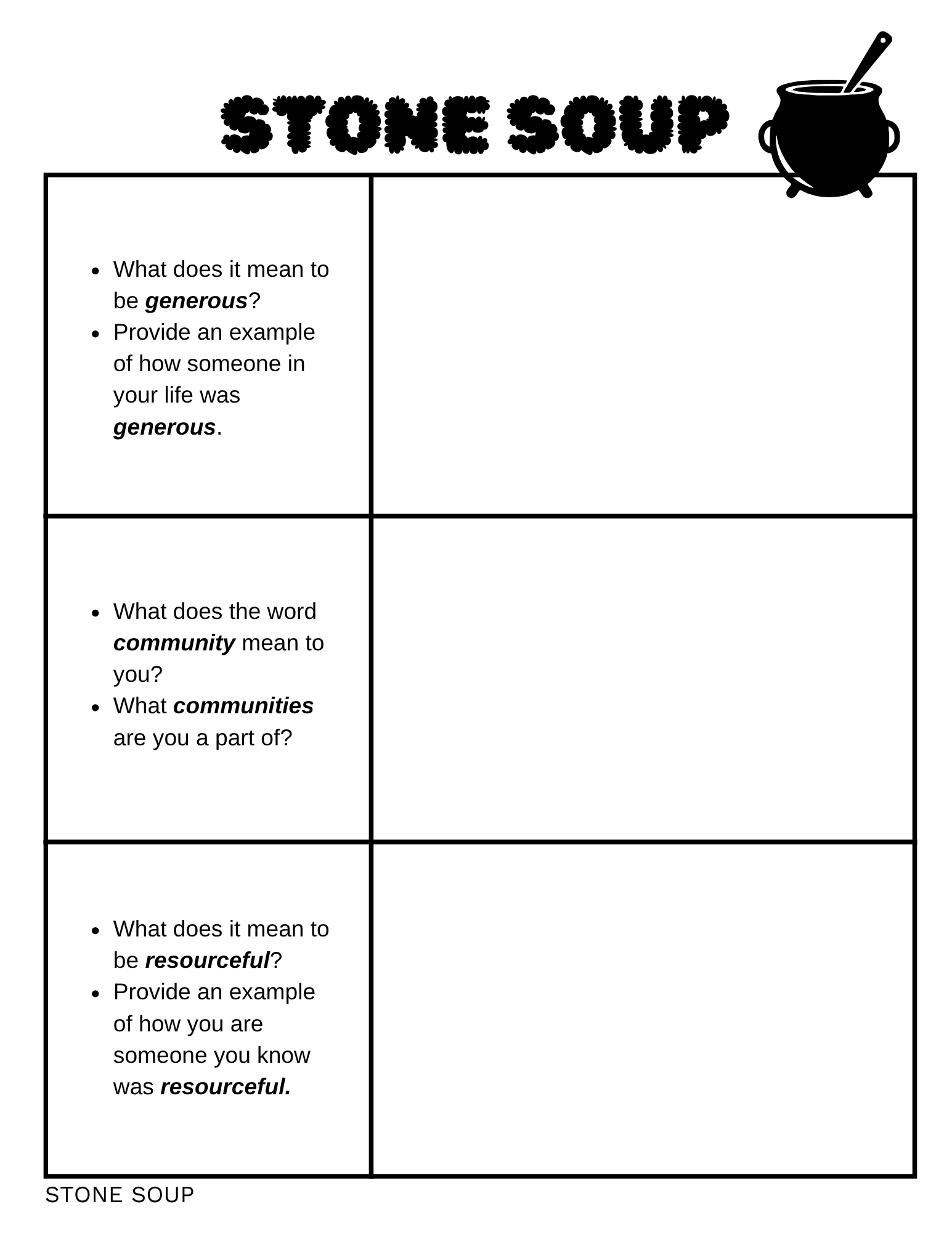 - Cultural Connections: Learn that versions of Stone Soup exist in many cultures—showing that kindness and cooperation are universal values.