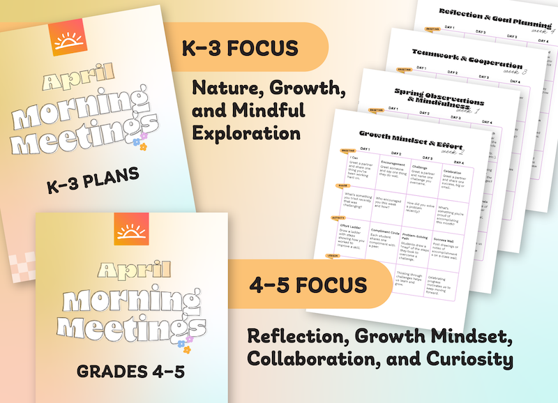 Ready-to-use four-week morning meeting plans for grades K–3 and another for grades 4–5.