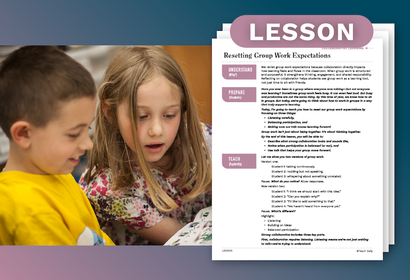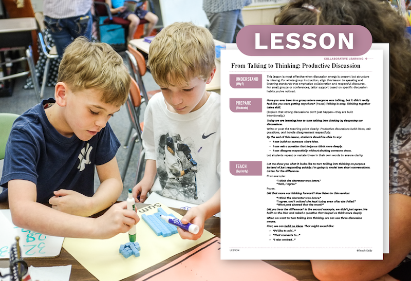 A printable lesson that helps students strengthen group work by listening closely, sharing participation, and using conversation to move learning forward.