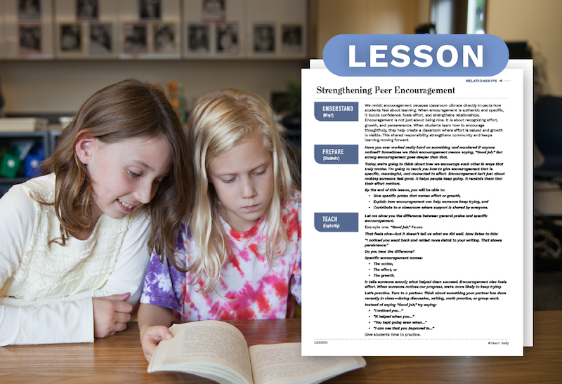 A printable lesson that helps students learn how to encourage one another with specific language that recognizes effort, growth, and perseverance.